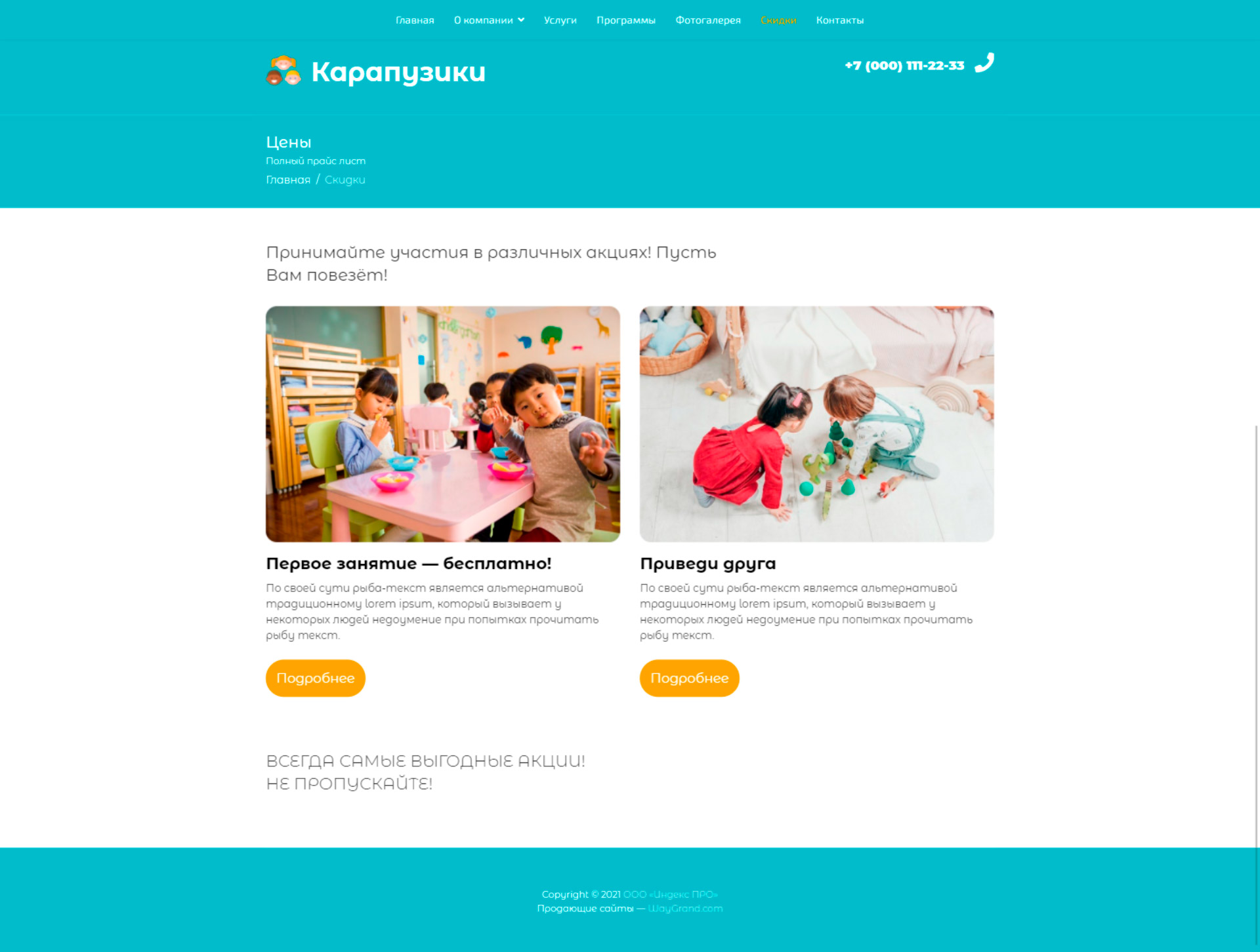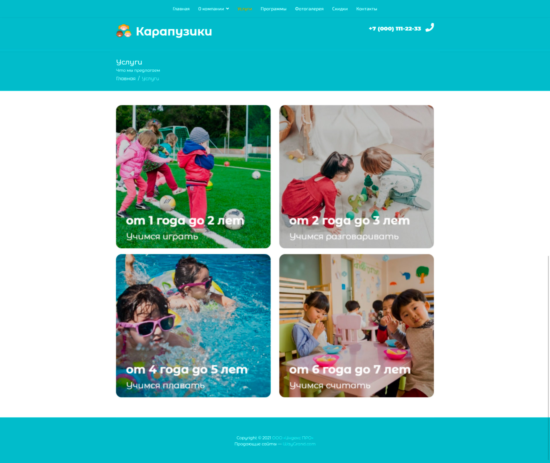 Закажите готовый продающий сайт визитка #0419301 в Молодечно за 5-7 дня «под ключ»: свёрстан, отрисован и готов к рекламе. Тематика шаблона «Частный детский центр».