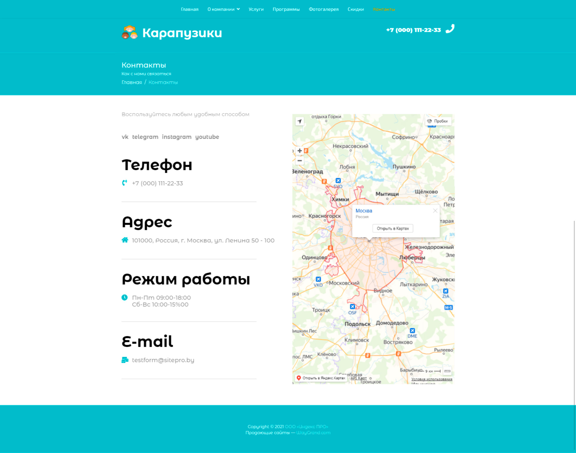 - Страница "Контакты"