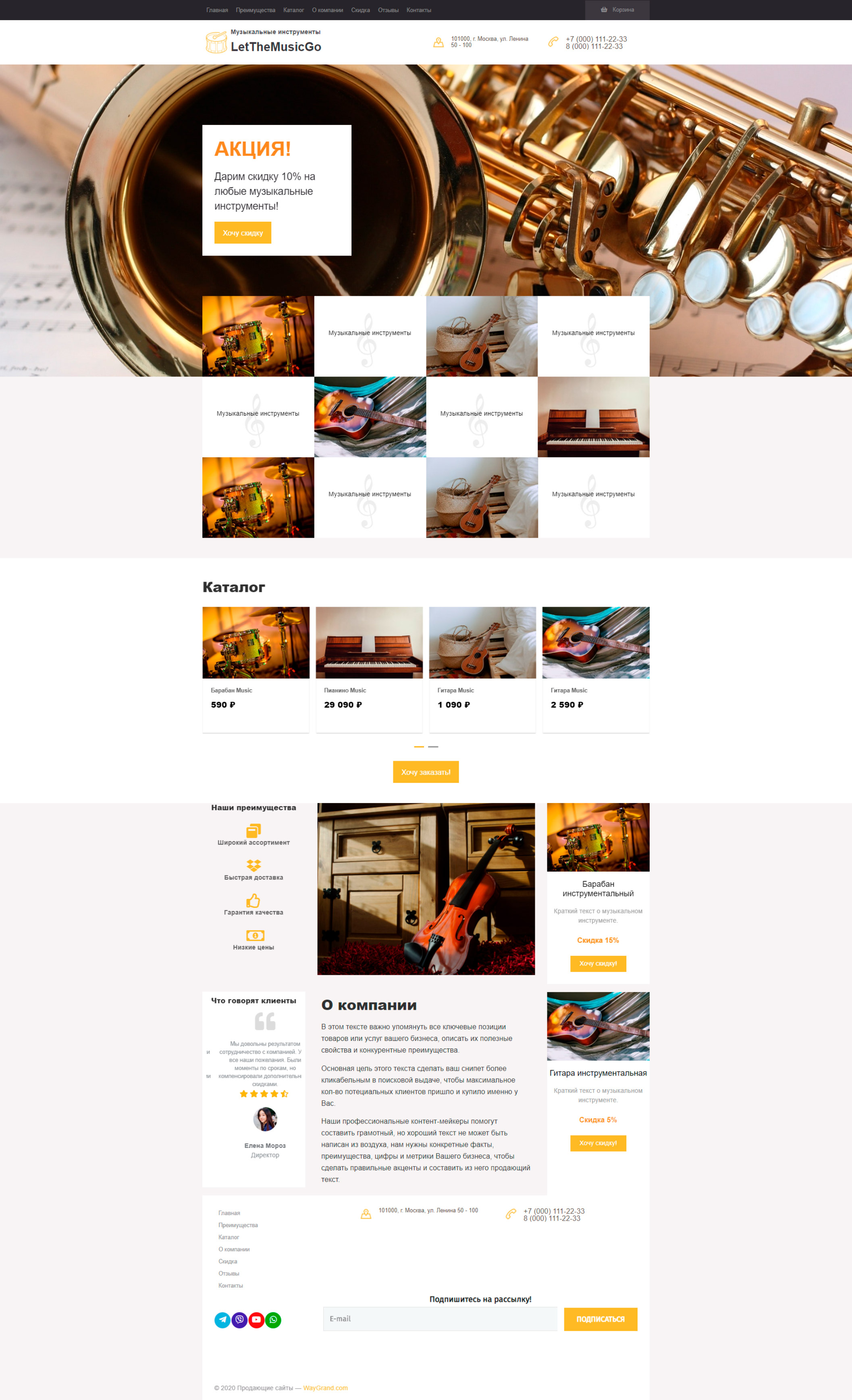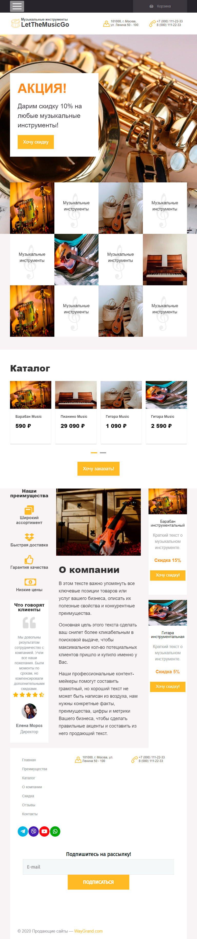 Закажите готовый продающий сайт лендинг #0710201 в Молодечно за 1-3 дня «под ключ»: свёрстан, отрисован и готов к рекламе. Тематика шаблона «Музыкальные инструменты».