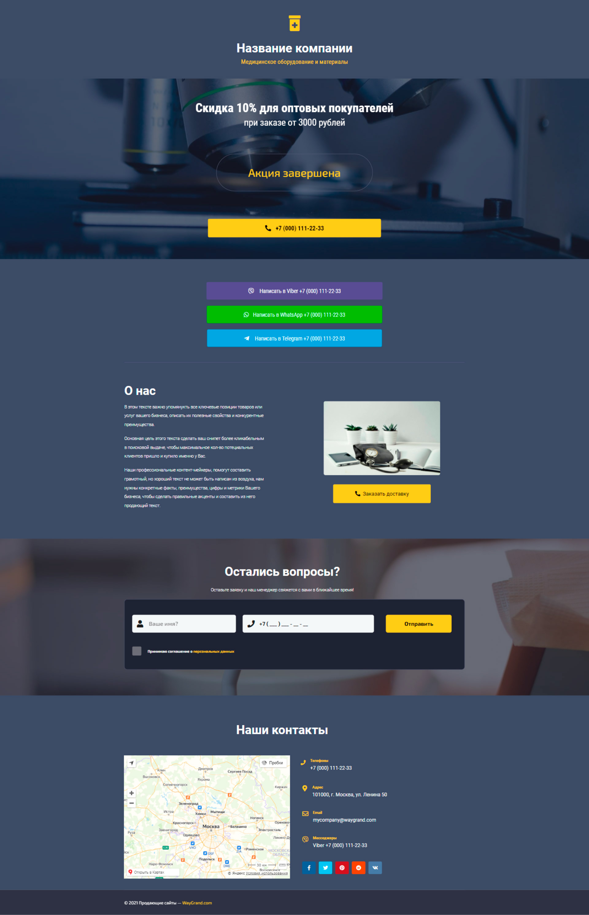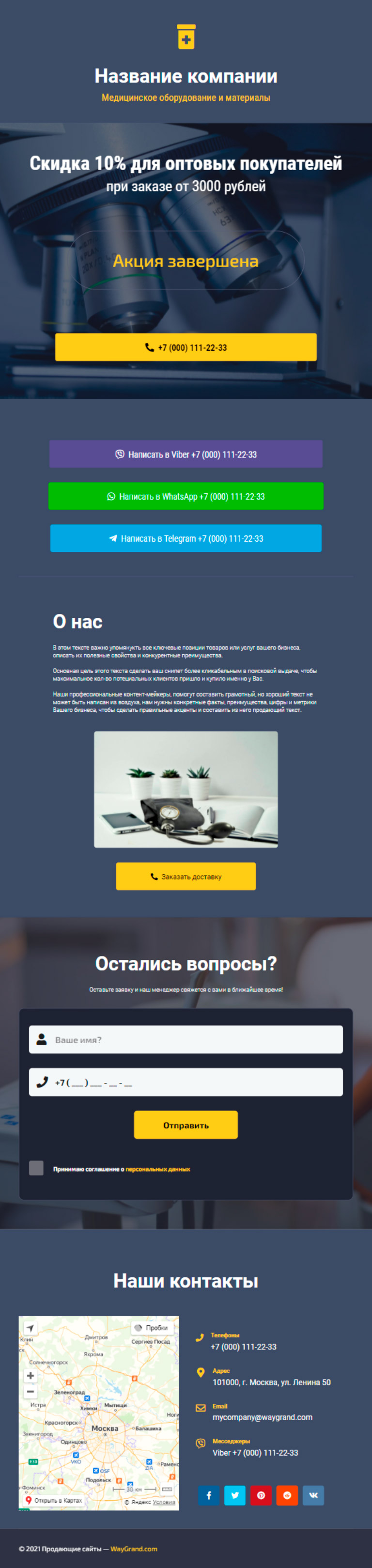 Закажите готовый продающий сайт визитка #1027101 в Молодечно за 5-7 дня «под ключ»: свёрстан, отрисован и готов к рекламе. Тематика шаблона «Медицинское оборудование и материалы».