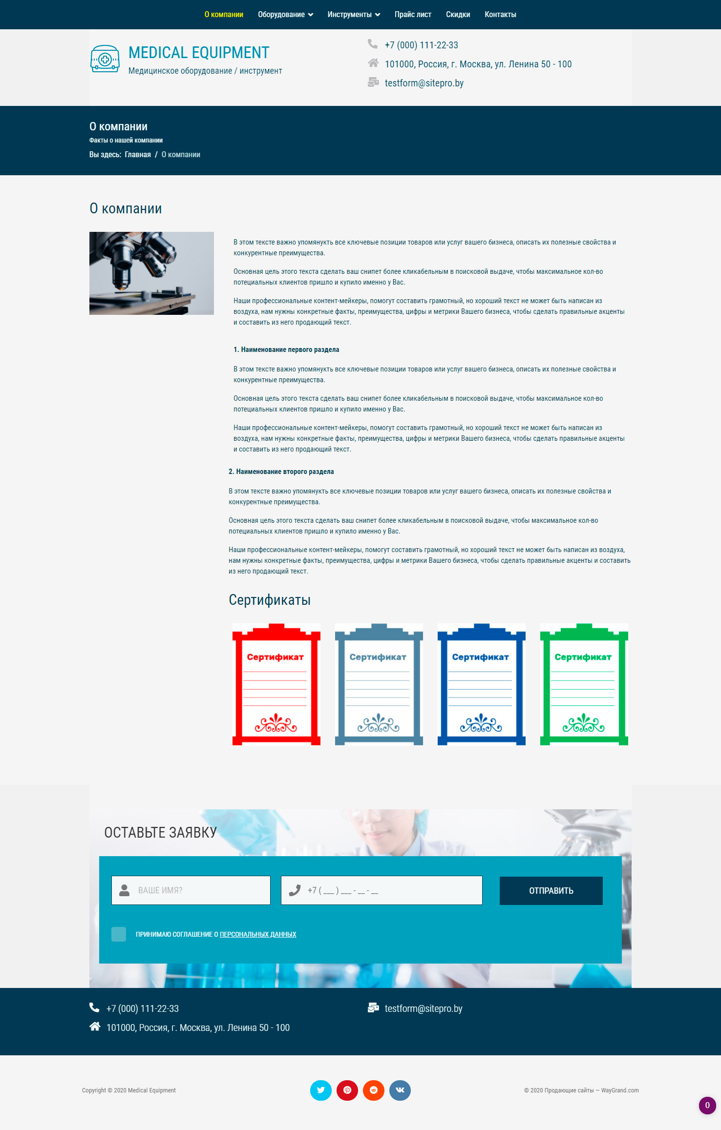 - Страница "О компании"