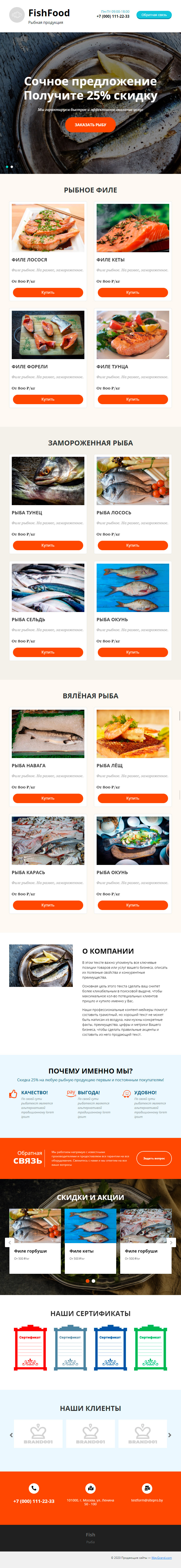 Закажите готовый продающий сайт лендинг #1731201 в Молодечно за 1-3 дня «под ключ»: свёрстан, отрисован и готов к рекламе. Тематика шаблона «Рыбная продукция».