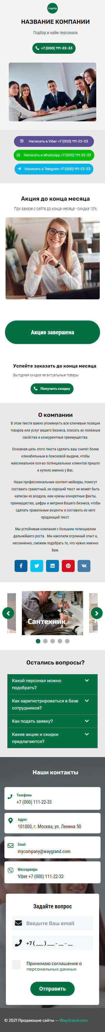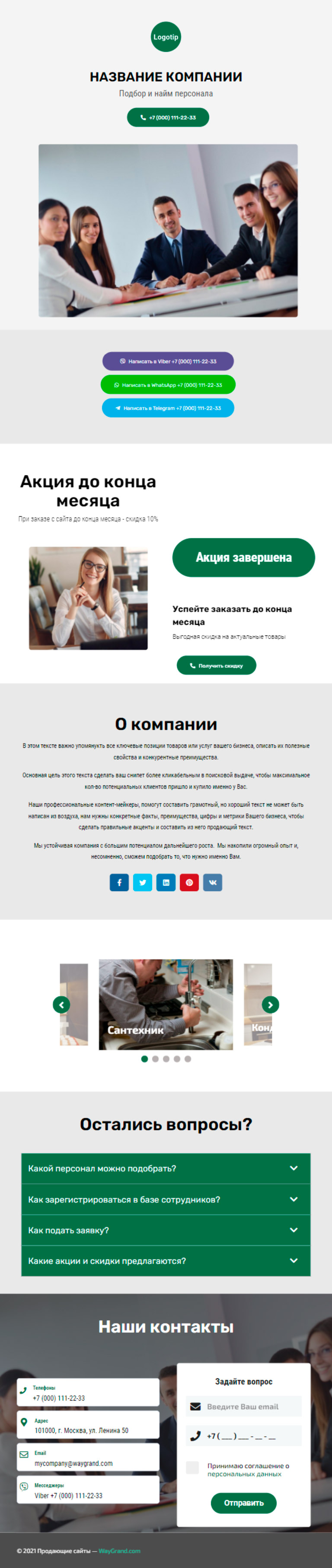 Закажите готовый продающий сайт визитка #1415101 в Молодечно за 5-7 дня «под ключ»: свёрстан, отрисован и готов к рекламе. Тематика шаблона «Подбор и найм персонала».
