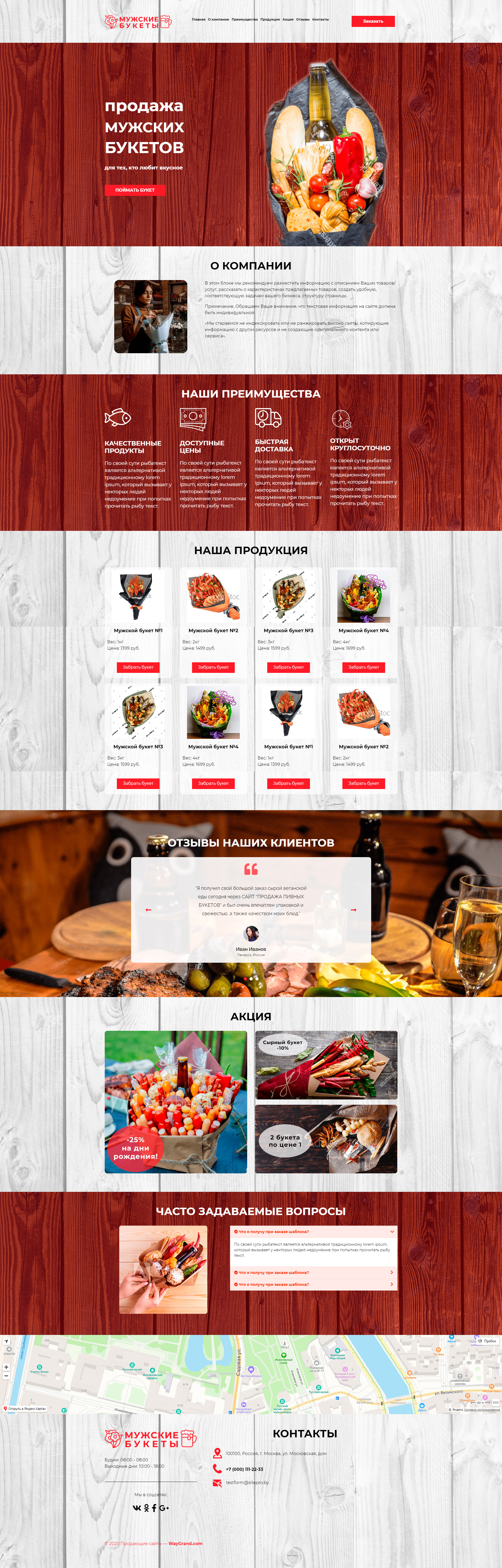 Закажите готовый продающий сайт лендинг #2404204 в Молодечно за 1-3 дня «под ключ»: свёрстан, отрисован и готов к рекламе. Тематика шаблона «Мужские букеты».