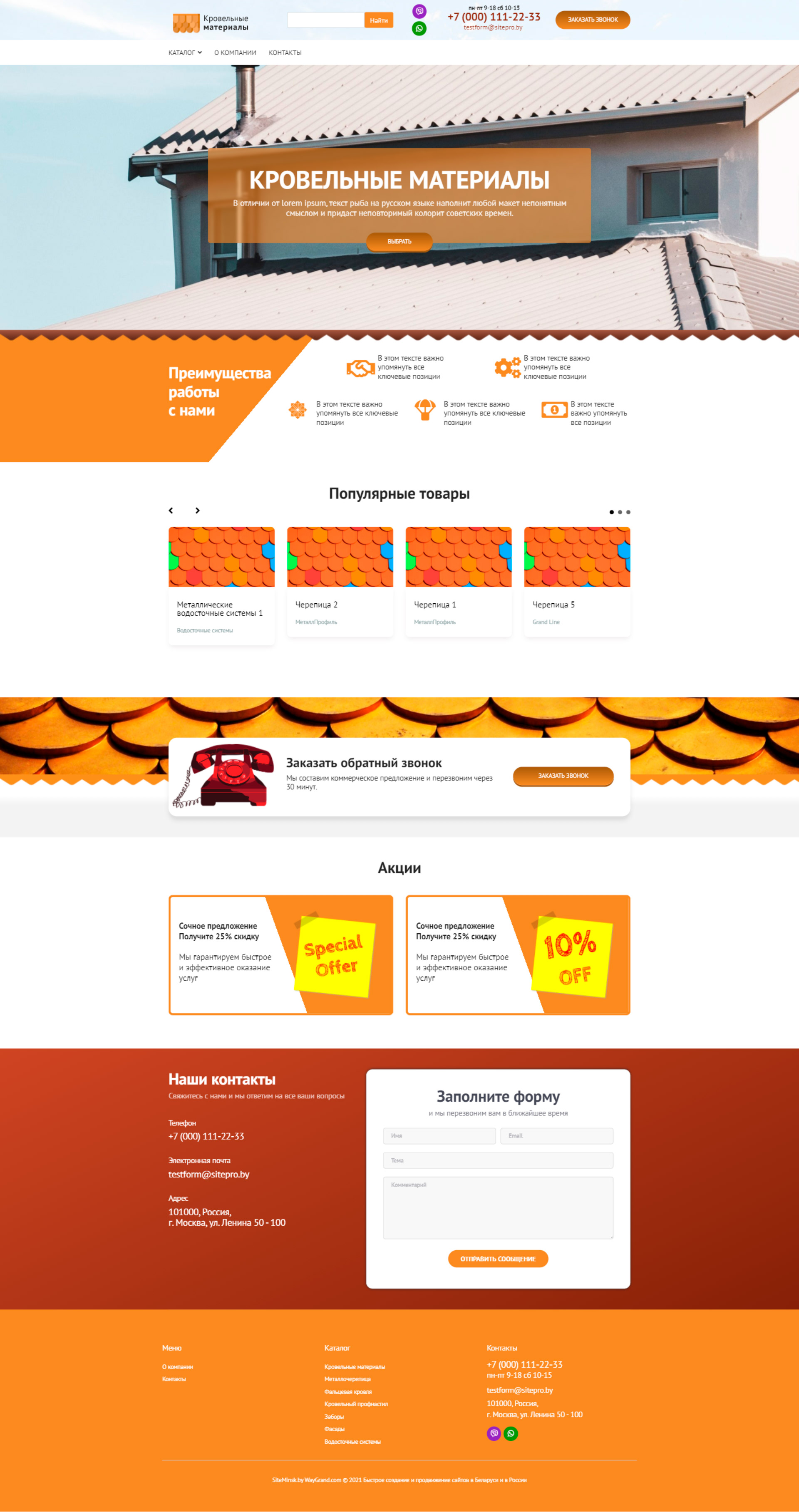Закажите готовый продающий сайт визитка #2023402 в Молодечно за 5-7 дня «под ключ»: свёрстан, отрисован и готов к рекламе. Тематика шаблона «Кровельные материалы».