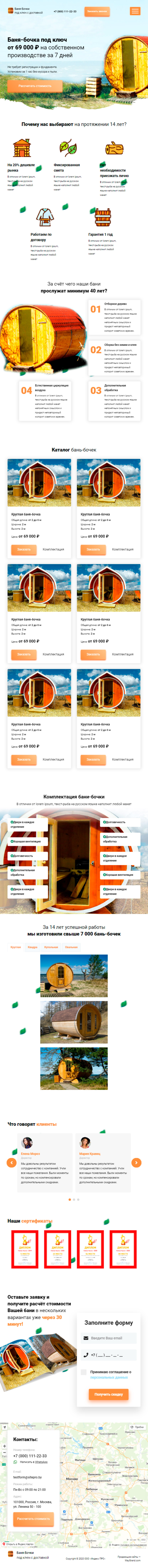Закажите готовый продающий сайт лендинг #2172204 в Молодечно за 1-3 дня «под ключ»: свёрстан, отрисован и готов к рекламе. Тематика шаблона «Баня-бочки».