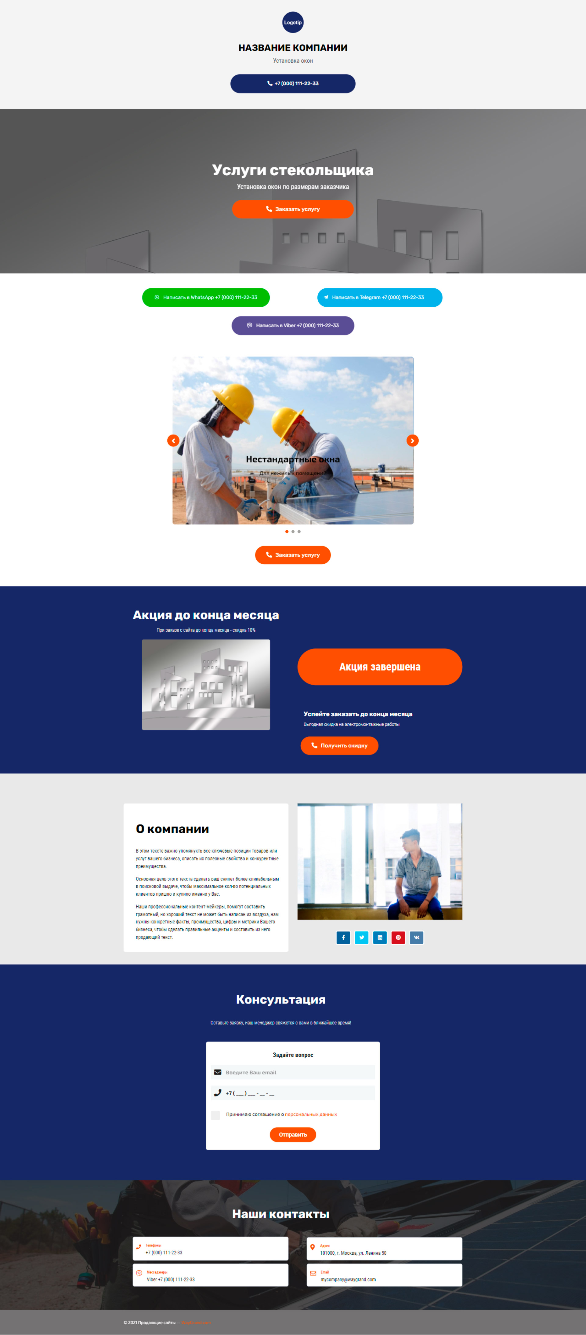 Закажите готовый продающий сайт визитка #2138101 в Молодечно за 5-7 дня «под ключ»: свёрстан, отрисован и готов к рекламе. Тематика шаблона «Установка окон».