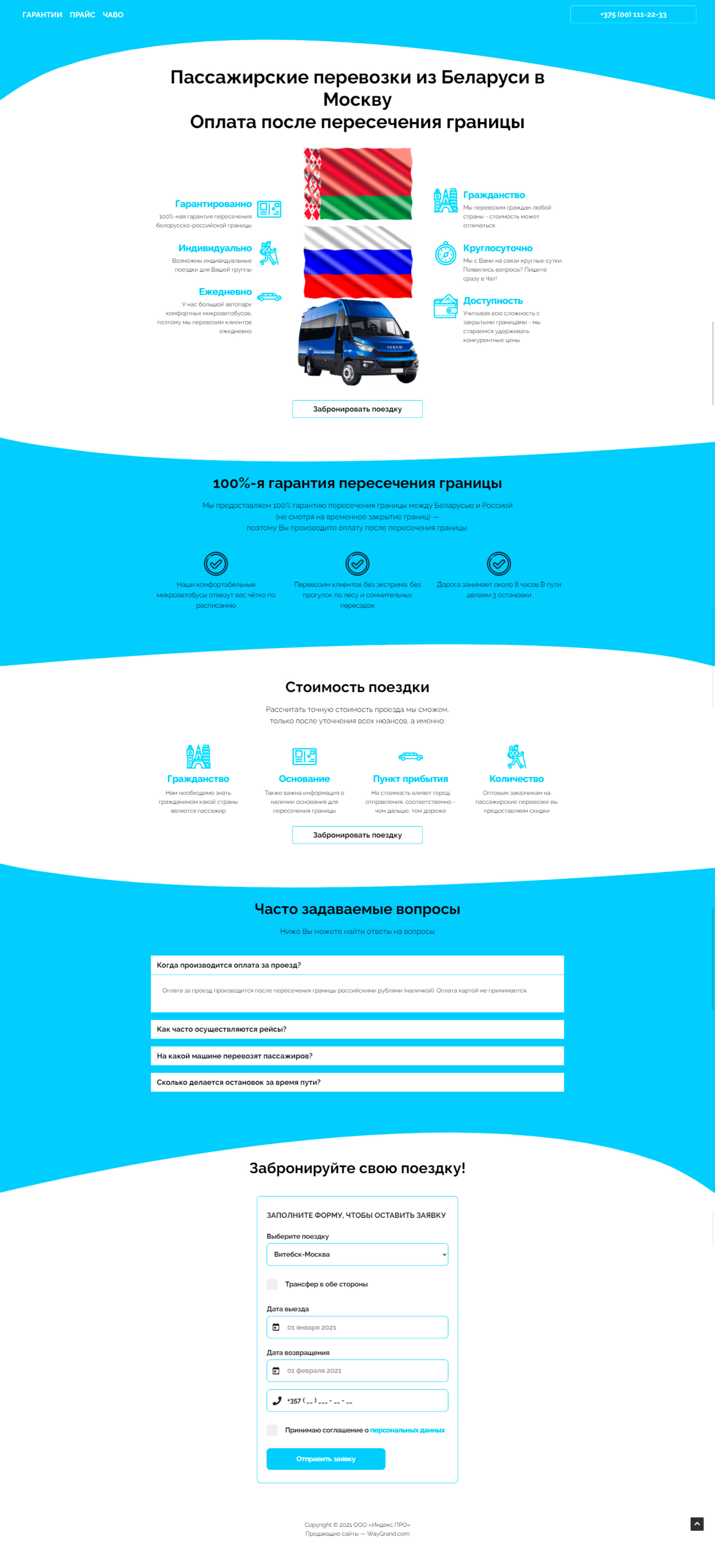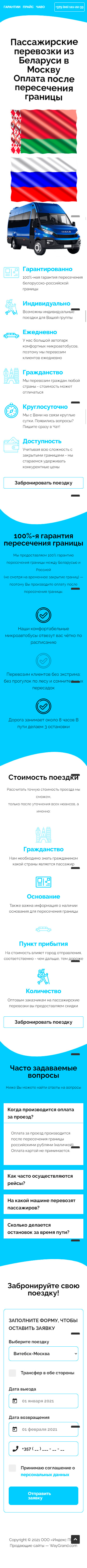 Закажите готовый продающий сайт лендинг #2528204 в Молодечно за 1-3 дня «под ключ»: свёрстан, отрисован и готов к рекламе. Тематика шаблона «Пассажирские перевозки из Беларуси в Москву».
