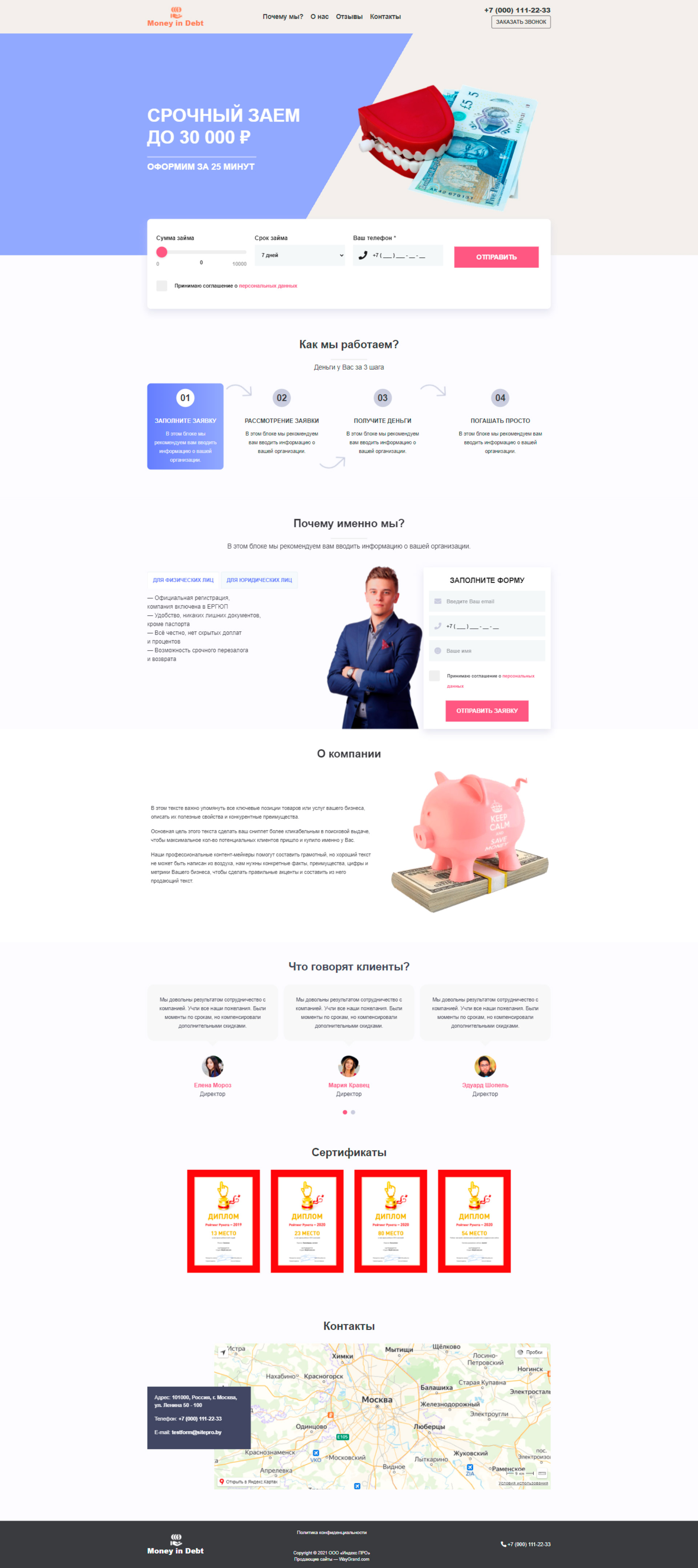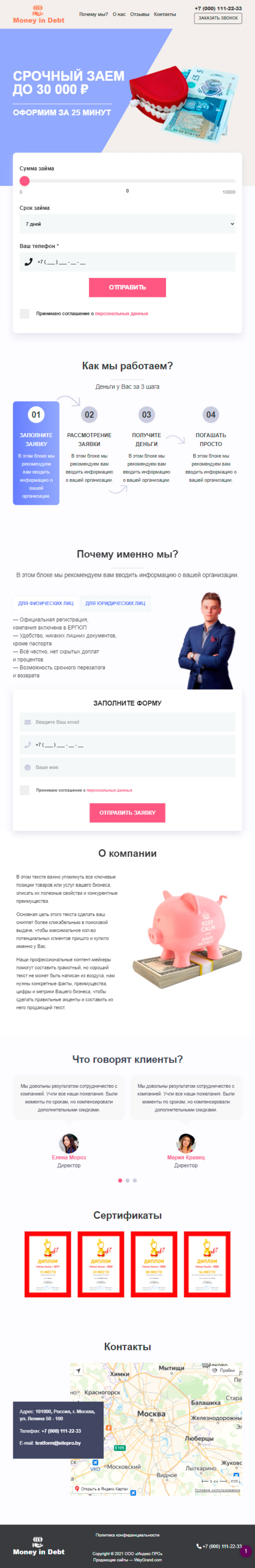 Закажите готовый продающий сайт лендинг #2825202 в Молодечно за 1-3 дня «под ключ»: свёрстан, отрисован и готов к рекламе. Тематика шаблона «Деньги в долг».