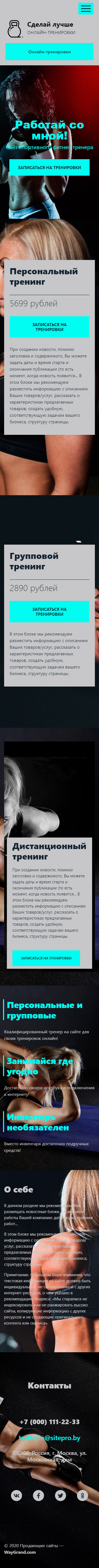 Закажите готовый продающий сайт лендинг #1955203 в Молодечно за 1-3 дня «под ключ»: свёрстан, отрисован и готов к рекламе. Тематика шаблона «Фитнес тренер».