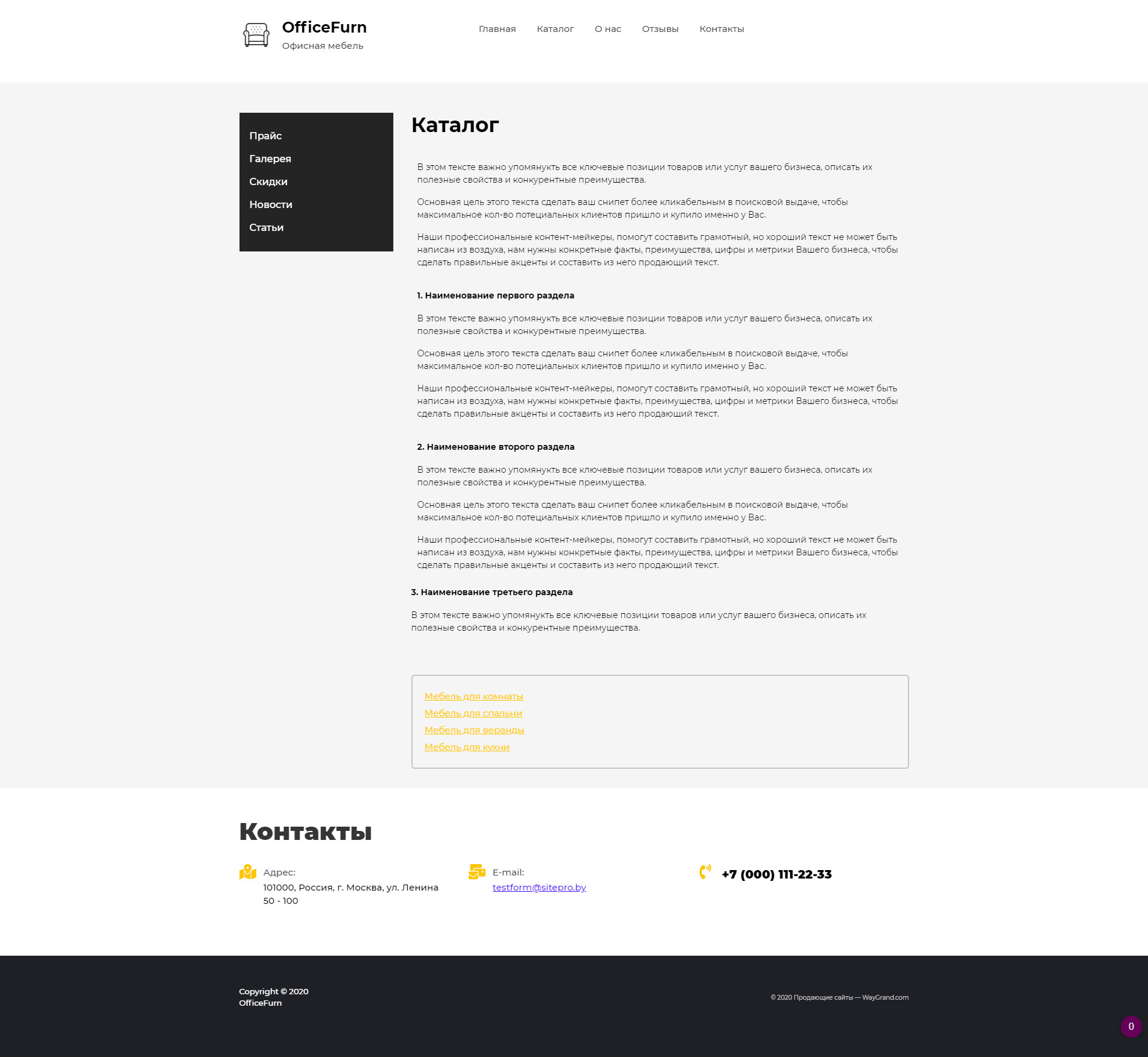 Закажите готовый продающий сайт визитка #0921301 в Молодечно за 5-7 дня «под ключ»: свёрстан, отрисован и готов к рекламе. Тематика шаблона «Офисная мебель».