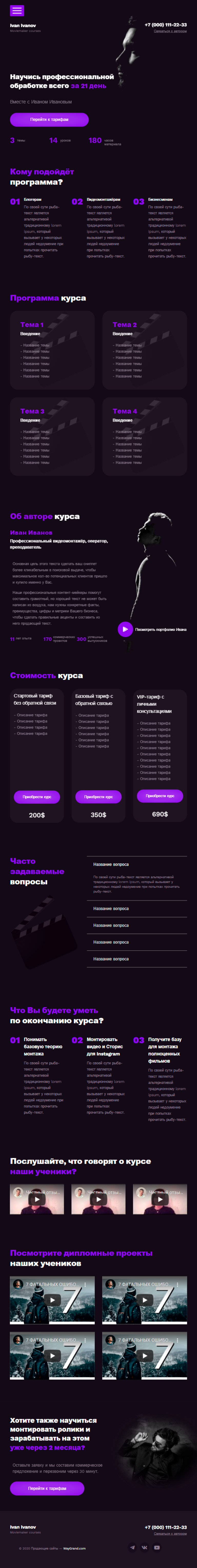 Закажите готовый продающий сайт лендинг #1467204 в Молодечно за 1-3 дня «под ключ»: свёрстан, отрисован и готов к рекламе. Тематика шаблона «Для курса видеомонтажа».