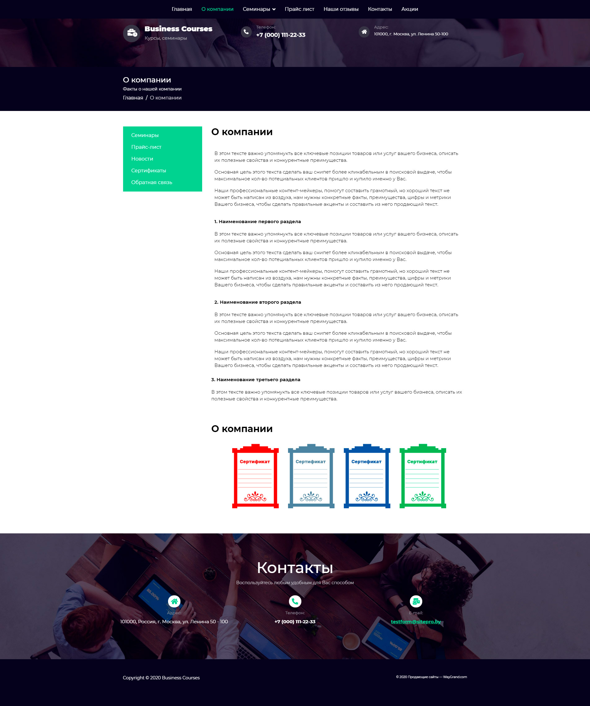 Закажите готовый продающий сайт визитка #1448303 в Молодечно за 5-7 дня «под ключ»: свёрстан, отрисован и готов к рекламе. Тематика шаблона «Бизнес курсы и семинары».