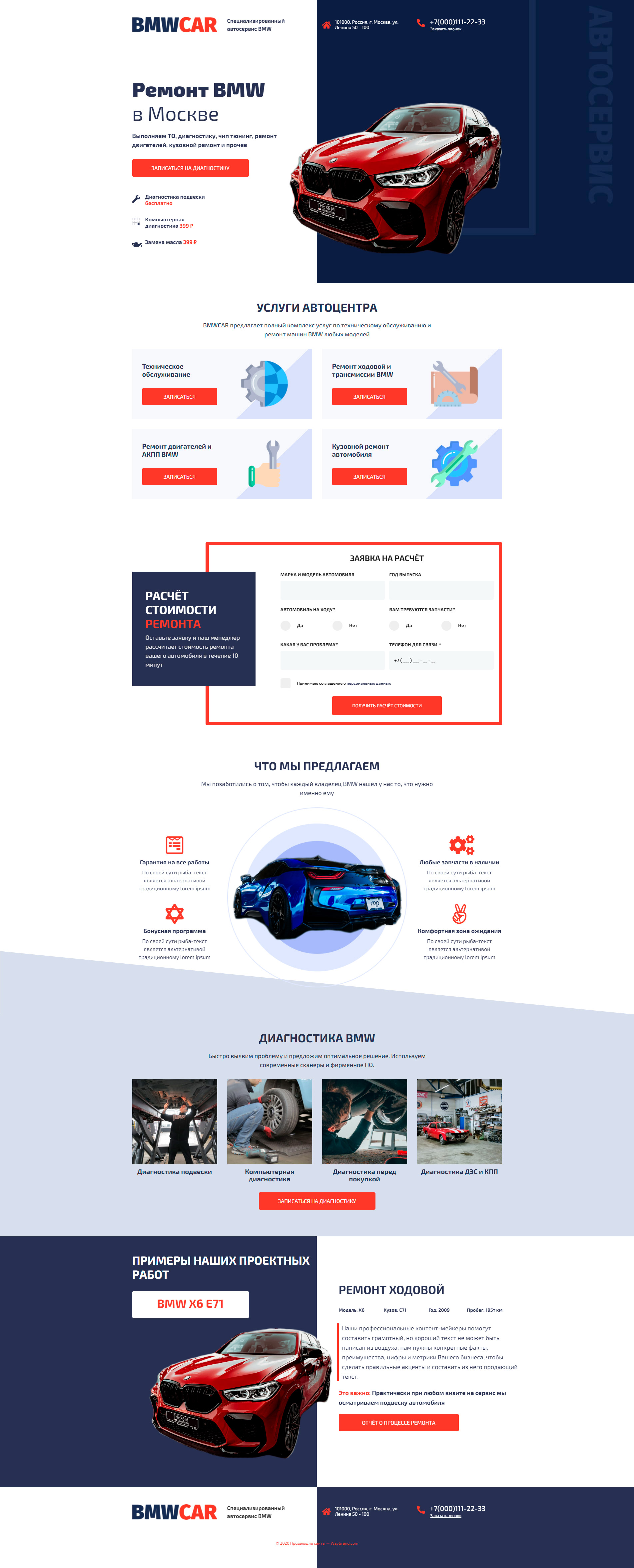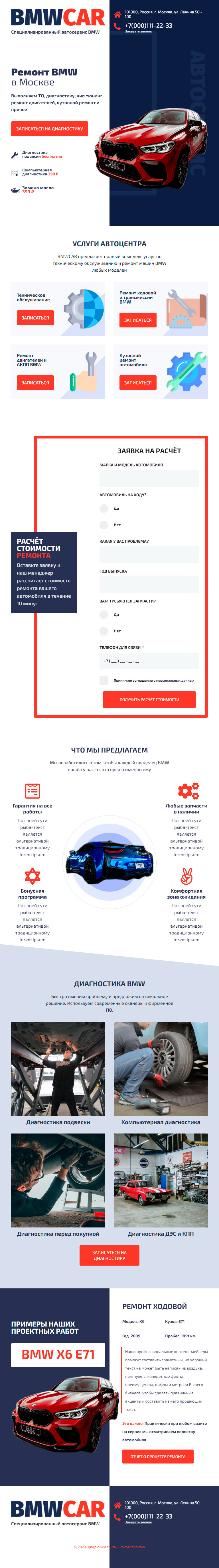 Закажите готовый продающий сайт лендинг #0210202 в Молодечно за 1-3 дня «под ключ» по выгодным ценам на WayGrand: свёрстан, отрисован и готов к рекламе. Тематика шаблона «Ремонт BMW».