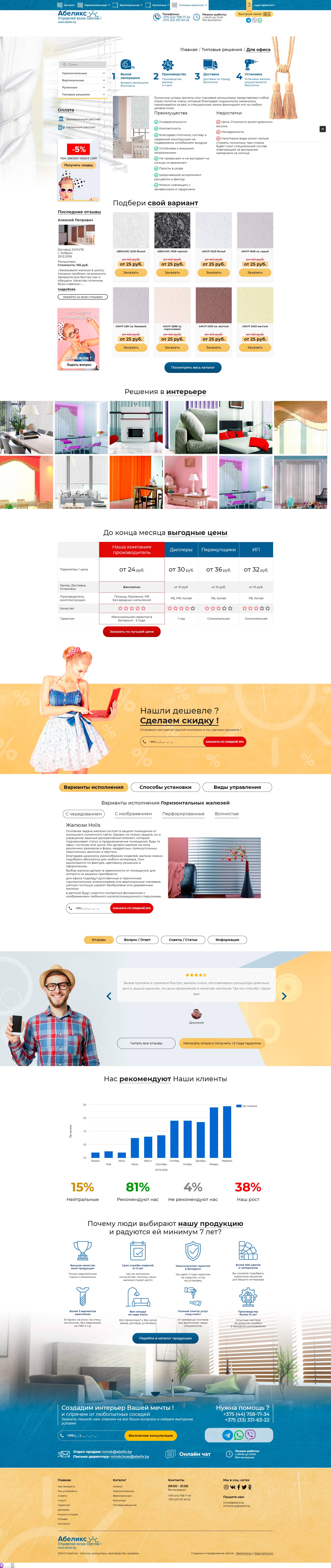 Разработали авторский сайт по тематике жалюзи и рольшторы под заказ за 35 дней.