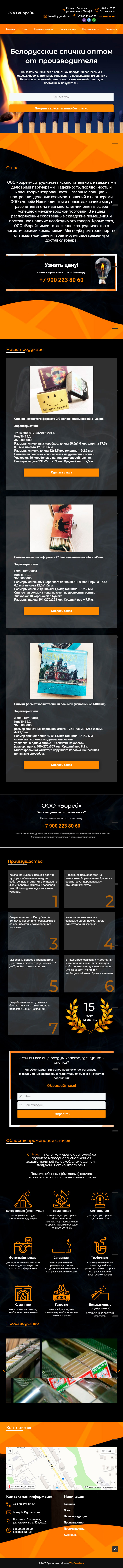 Закажите готовый продающий сайт лендинг #115 в Молодечно за 1-3 дня «под ключ»: свёрстан, отрисован и готов к рекламе. Тематика шаблона «Белорусские спички оптом от производителя».