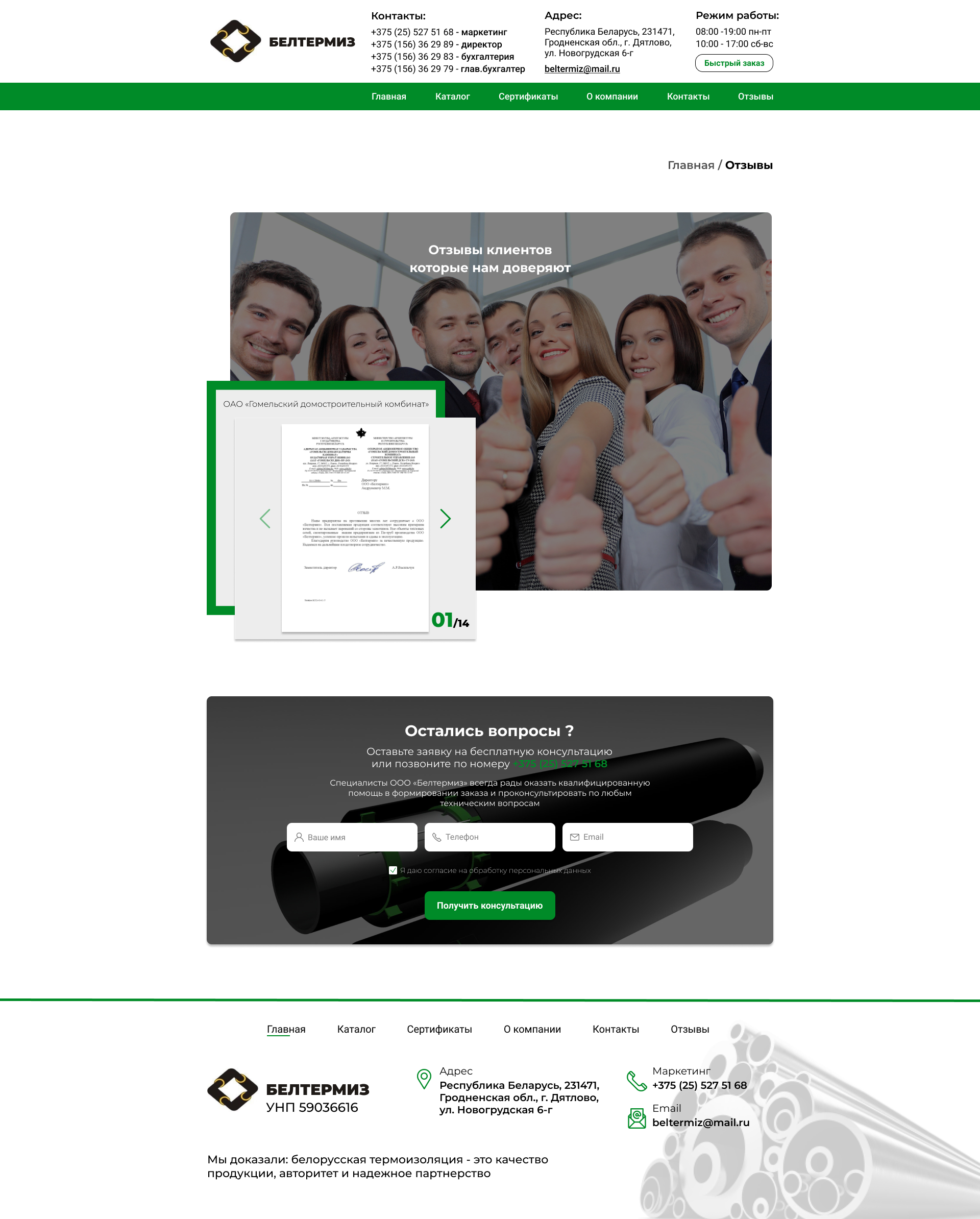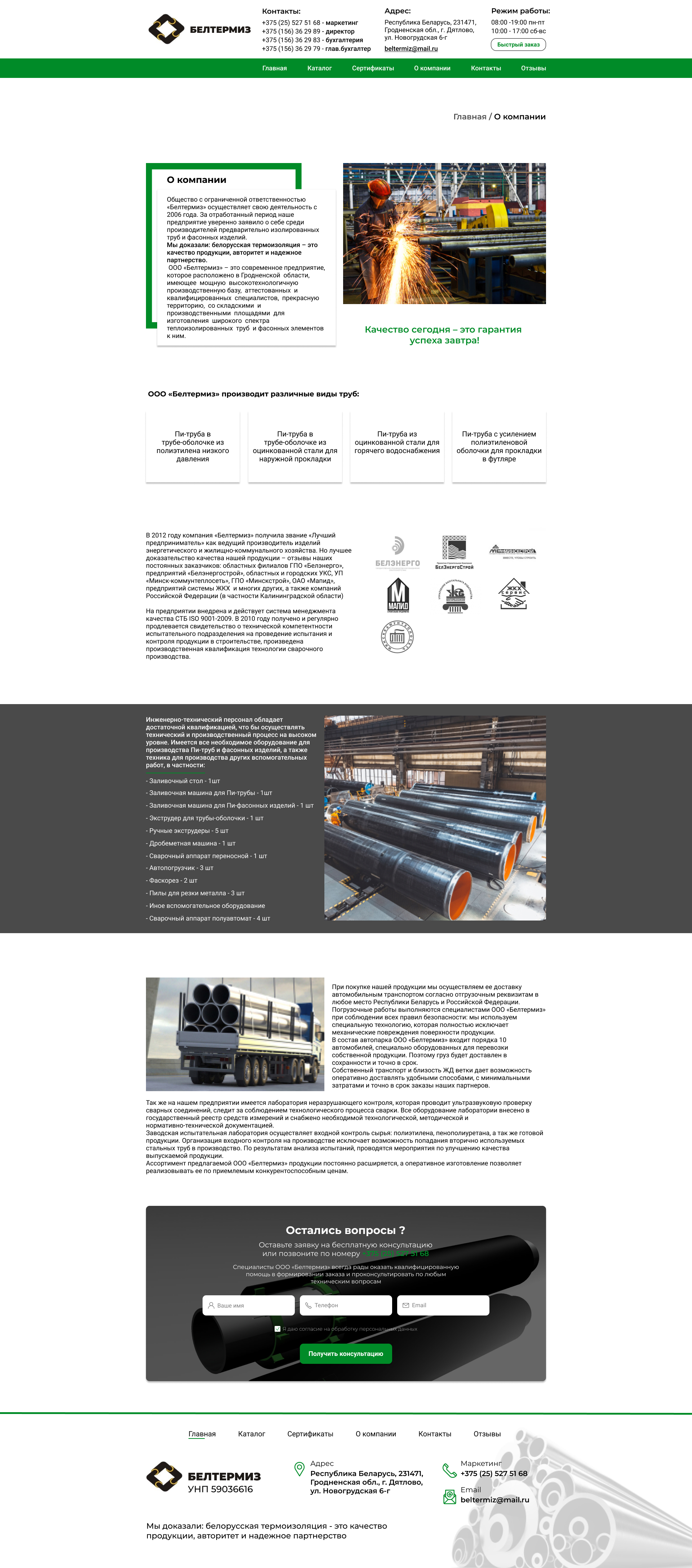 Закажите готовый продающий сайт визитка #141 в Молодечно за 5-7 дня «под ключ»: свёрстан, отрисован и готов к рекламе. Тематика шаблона «Производство ПИ-труб».