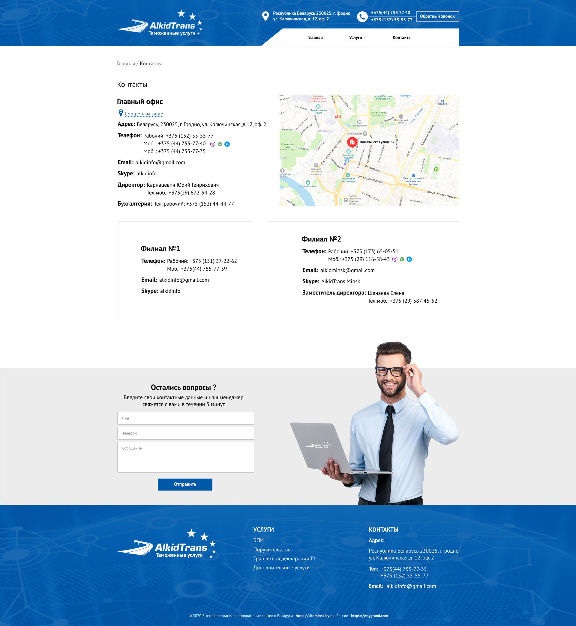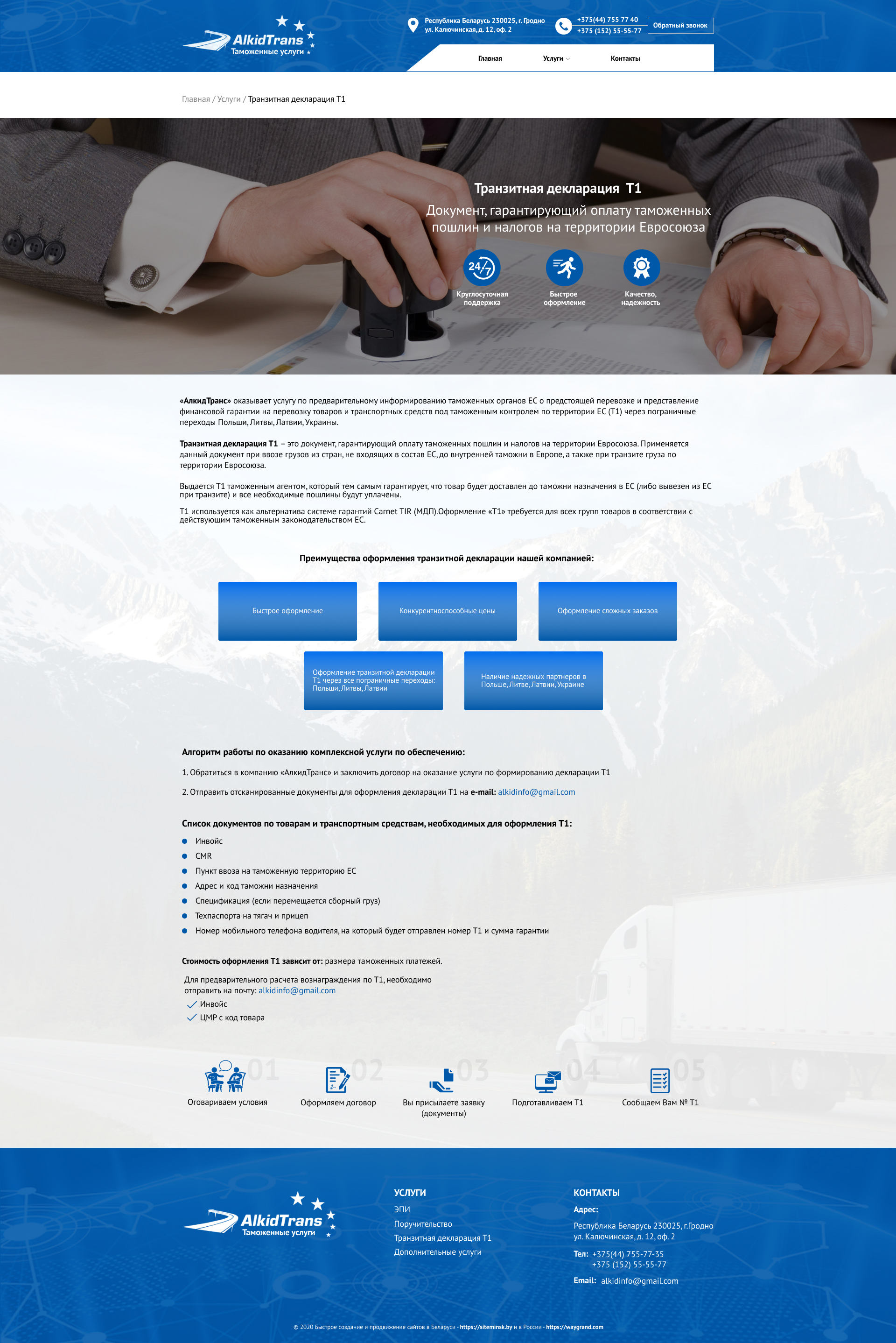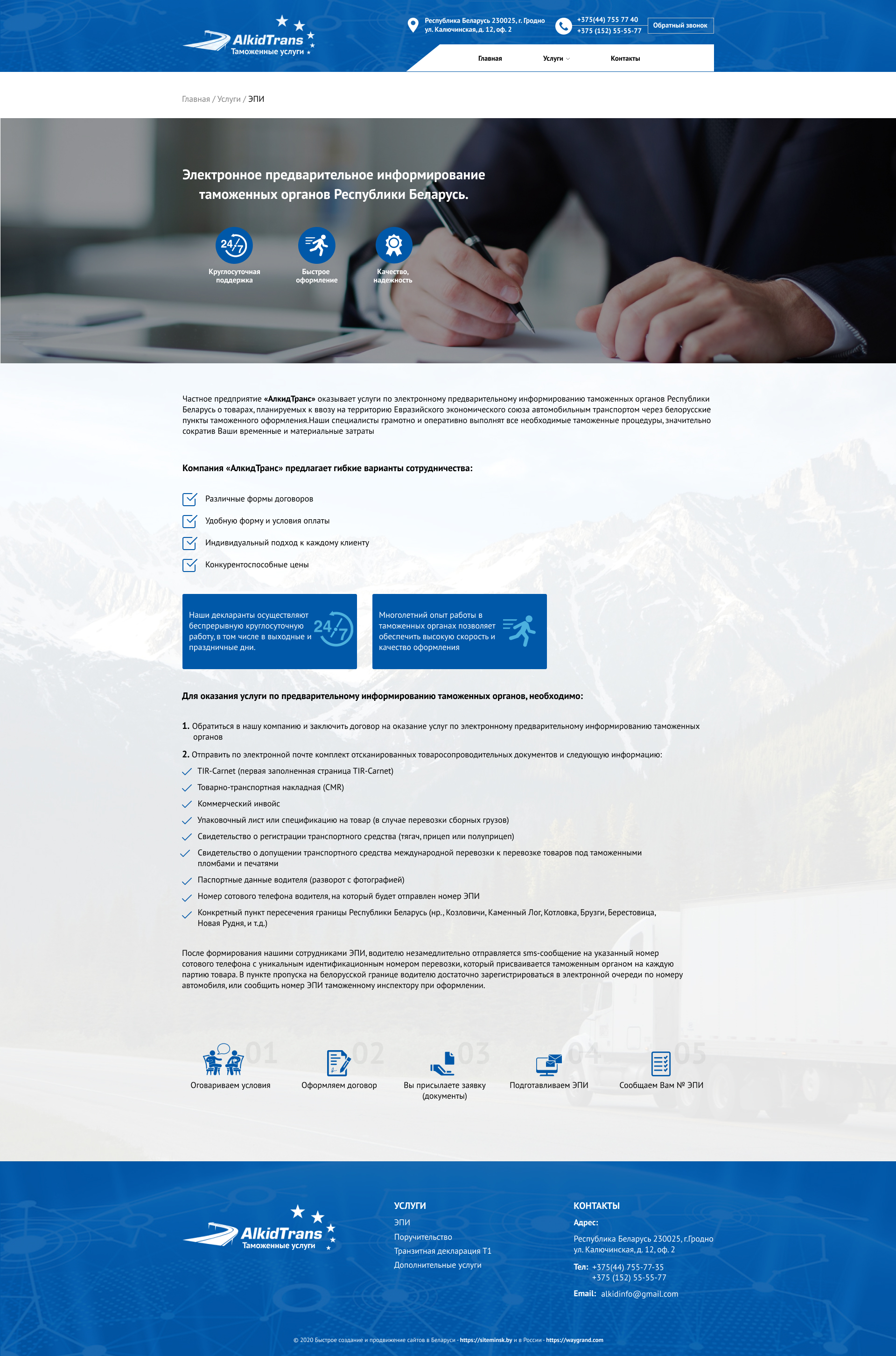 Закажите готовый продающий сайт визитка #234 в Молодечно за 5-7 дня «под ключ»: свёрстан, отрисован и готов к рекламе. Тематика шаблона «Таможенные услуги».